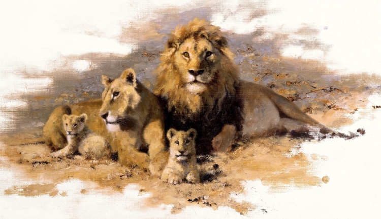 Картинка лев львица и два львенка
