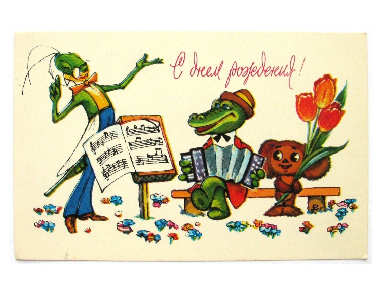 ![С днем рождения крокодил Гена открытка]()