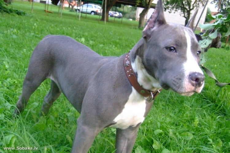 ![Белый чёрный стаффордширский терьер голубой окрас]()