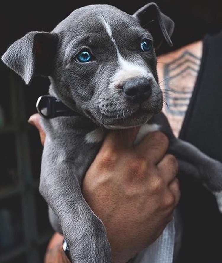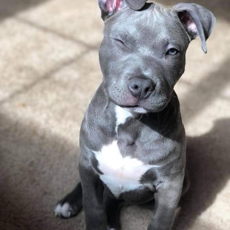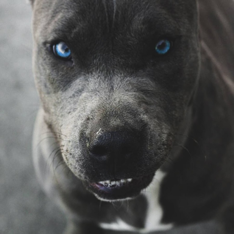 На фотографии представлен серый стаффордширский терьер с прекрасными глазами, окрашенными в голубой оттенок. Этот питомец выглядит очень элегантно и стильно благодаря своей шерсти, которая создает особую гармонию с его яркими глазами. Голубые глаза придают ему некую загадочность и привлекательность.