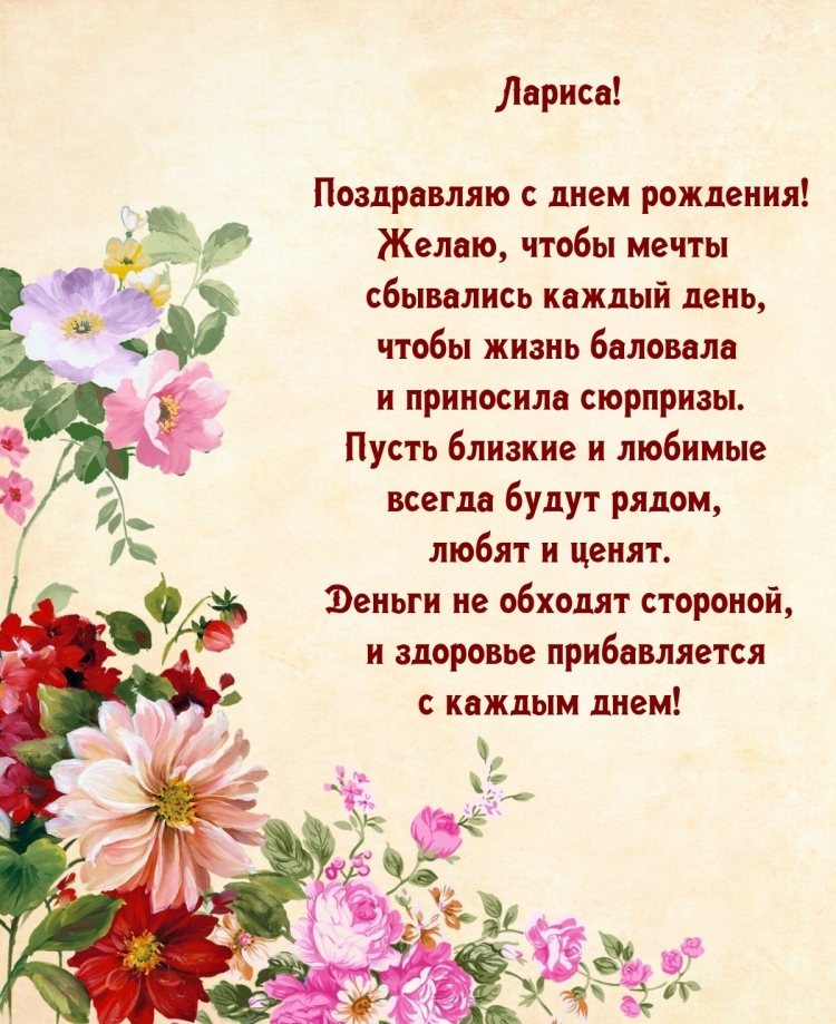 Лариса Геннадьевна, вы - настоящая жемчужина, которая приносит красоту и радость в нашу жизнь. Мы желаем вам безграничного счастья, здоровья и успеха во всех начинаниях. Пусть каждый день будет наполнен яркими красками и незабываемыми моментами! С днем рождения!