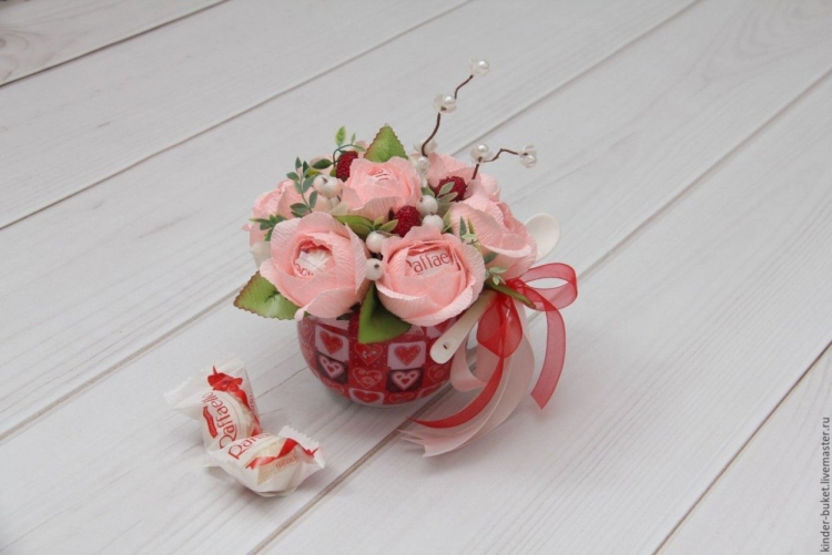 ![Конфетный букет в чашке]()