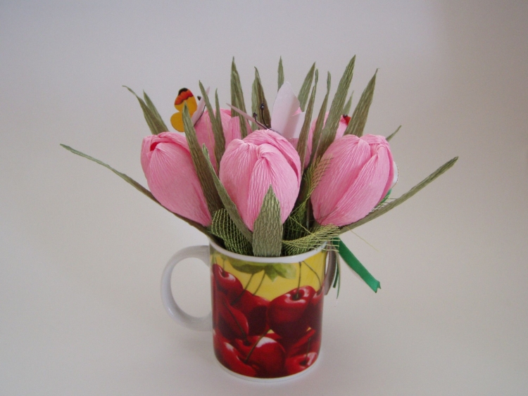 ![Тюльпаны из конфет в кружке]()